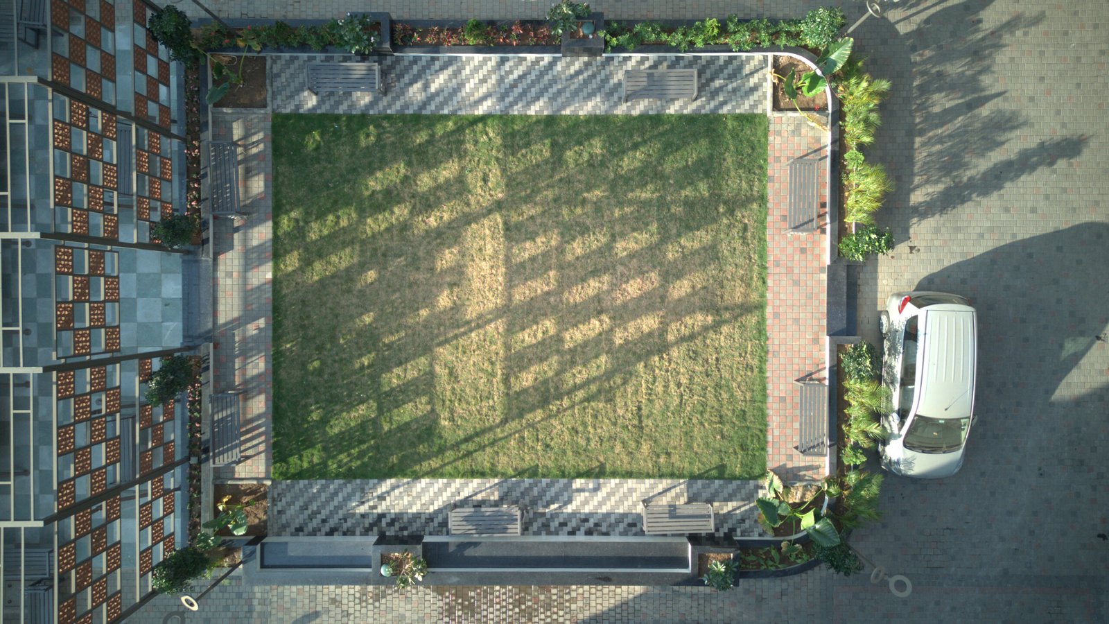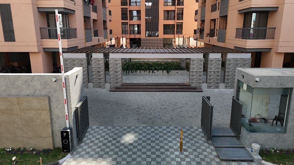 Sai Parisar in Palanpur, Surat is a ready-to-move housing society offering 3BHK apartments. The site combines comfort and modern styling, so exterior transitions needed durable, low-maintenance paver systems for daily residential traffic.